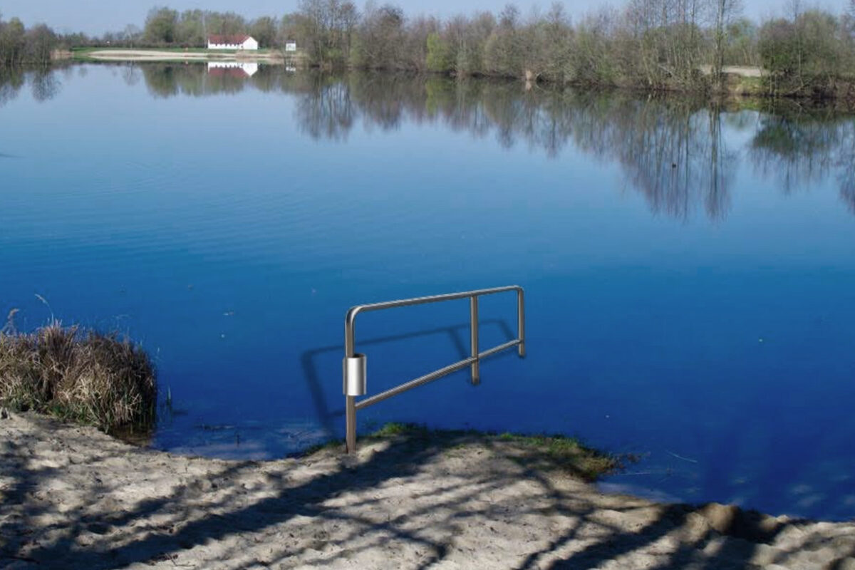 So könnte die von Peter Seubert vorgeschlagene Einstiegshilfe in den Badeweiher aussehen. – Fotomontage: Peter Seubert