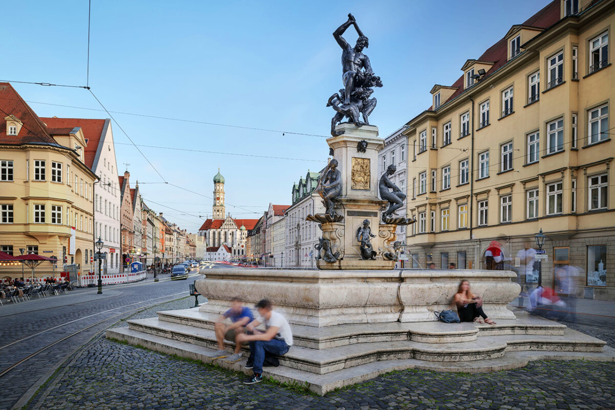 Der 1596-1600 geschaffene Herkulesbrunnen in der Augsburger Maximilanstraße – Foto: Günther Bayerl/Regio Augsburg